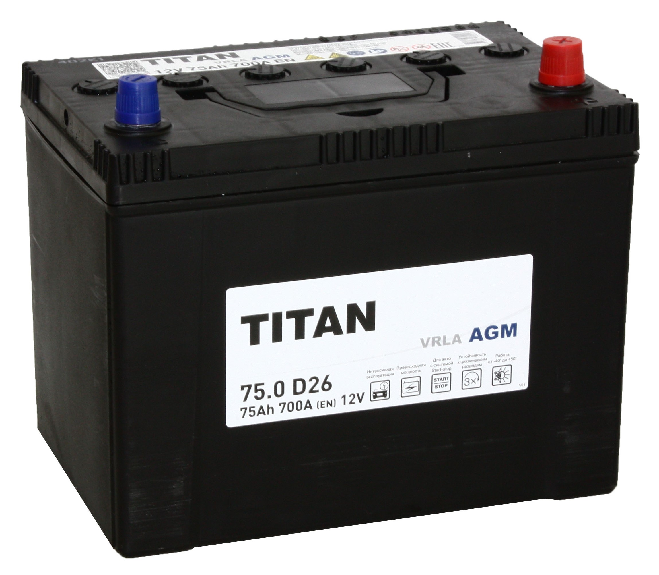 Аккумулятор Titan AGM 6СТ-75.0 VRLA (D26L)
