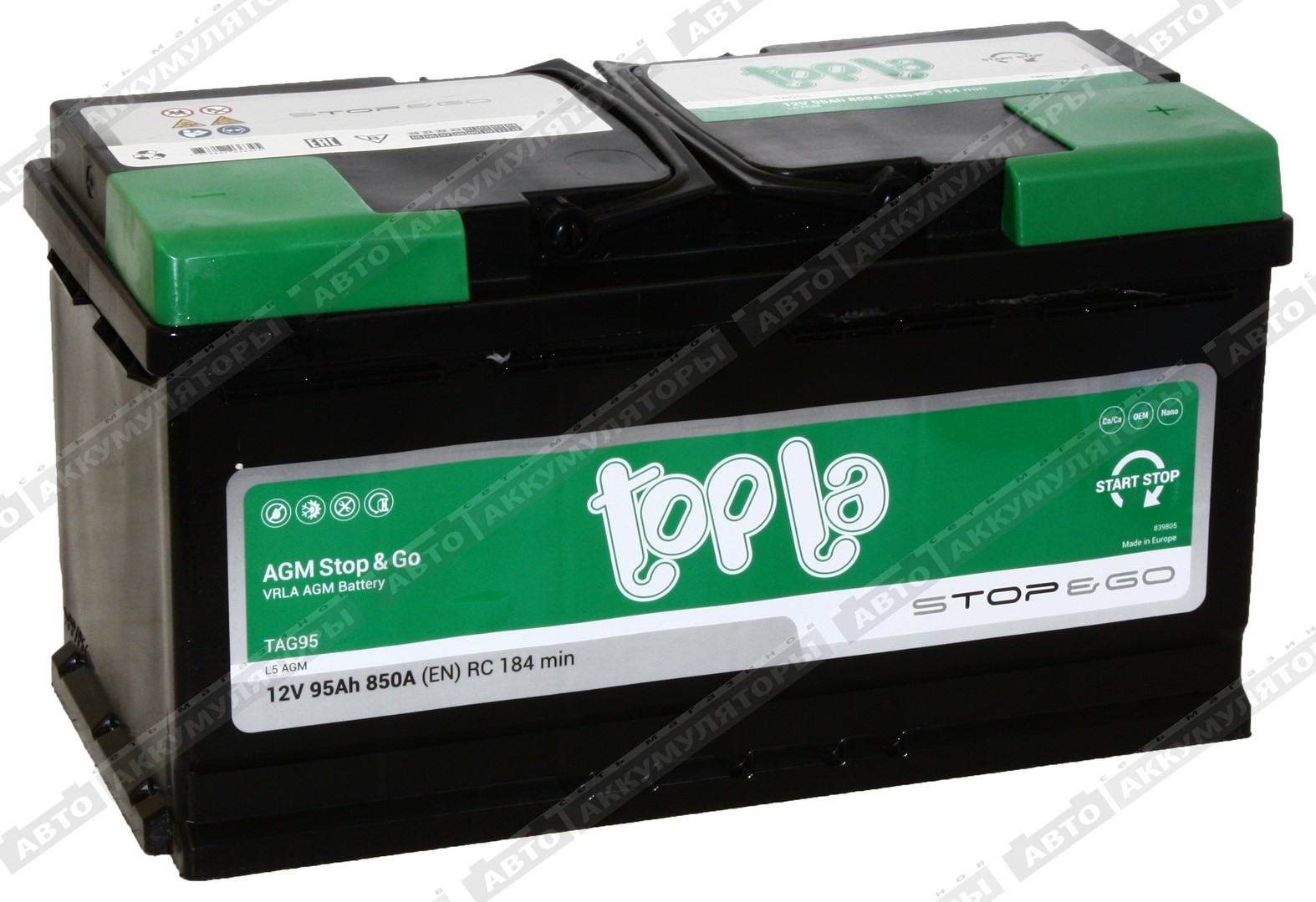 Topla AGM Stop&Go клапанно-регулируемые свинцово-кислотные батареи (VRLA), предназначены для использования в транспортных средствах с расширенной функцией СТАРТ/СТОП, где применена функция рекуперации энергии. Батарея VRLA AGM – это свинцово-кислотная улучшенная батарея с максимальной производительностью. Это герметичная батарея, созданная по технологии AGM (Absorbed Glass Material), в которой электролит абсорбирован в сепараторах из специального стекловолокна, которые гарантируют защиты от протечки электролита, даже при повреждении корпуса.