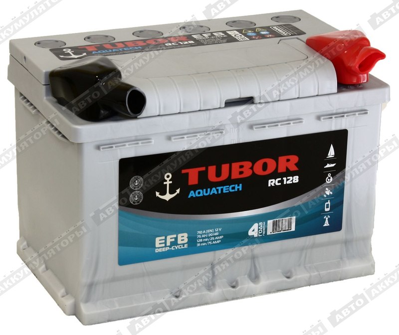 Легковой аккумулятор Tubor AQUATECH EFB 6СТ-75.0 RC128