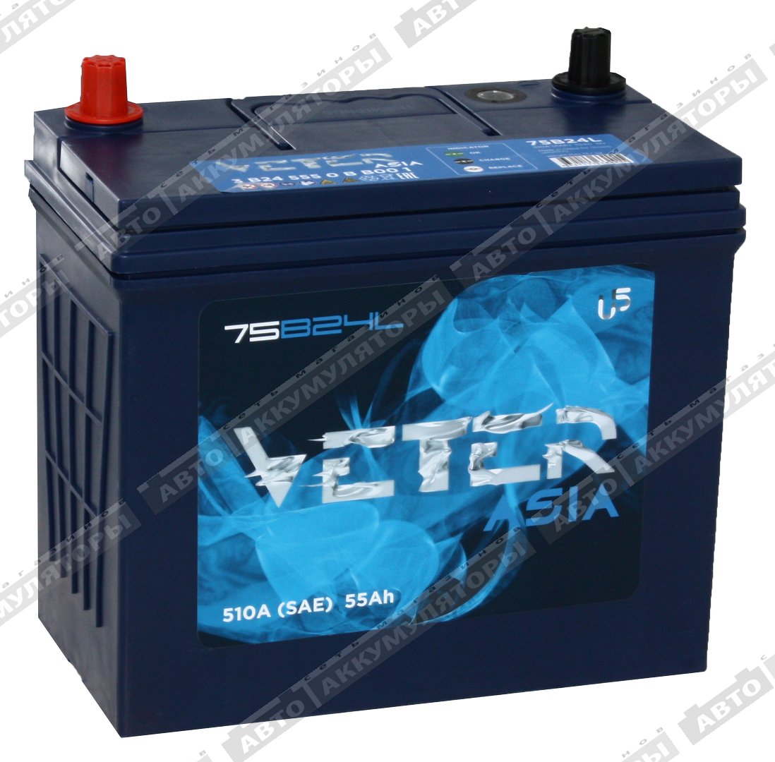 Легковой аккумулятор Veter NEW ASIA 6СТ-55.0 VL (75B24L)
