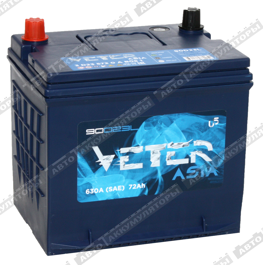 Легковой аккумулятор Veter NEW ASIA 6СТ-72.0 VL (90D23FL)