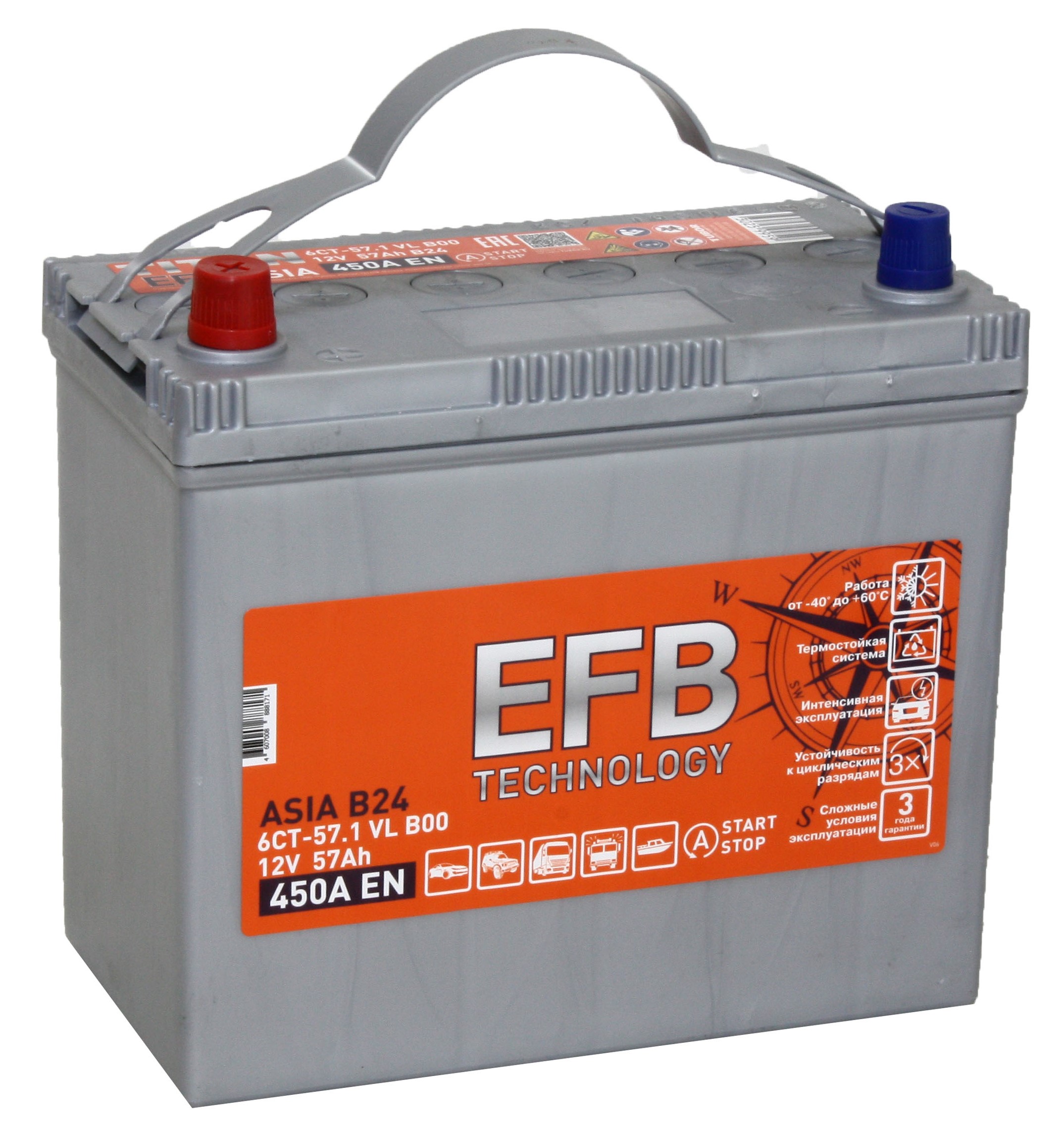 Легковой аккумулятор Titan Asia EFB 6СТ-57.1 VL (B24R)