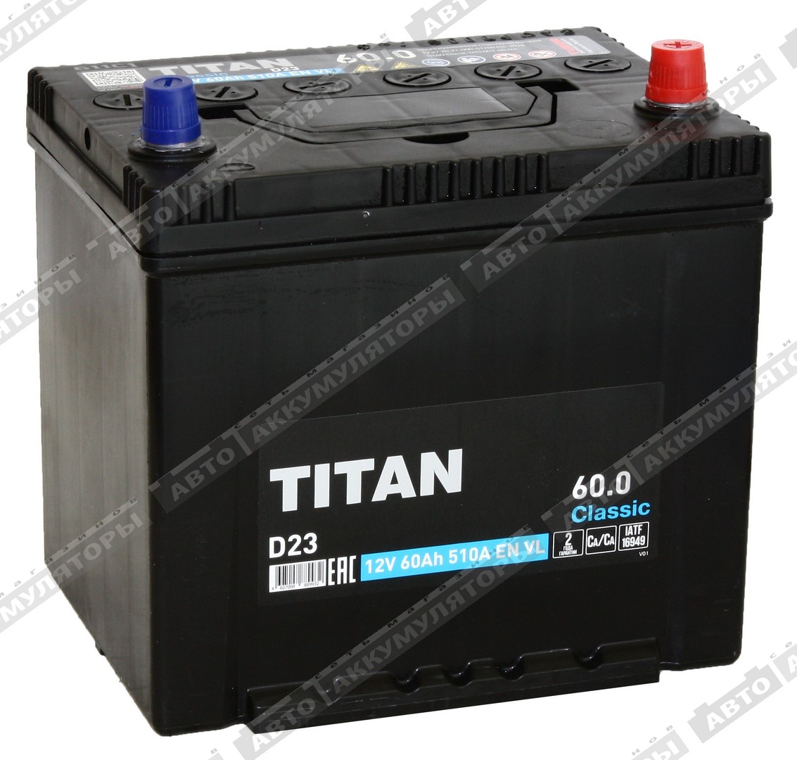 Легковой аккумулятор Titan Classic 6СТ-60.0 VL (D23FL)