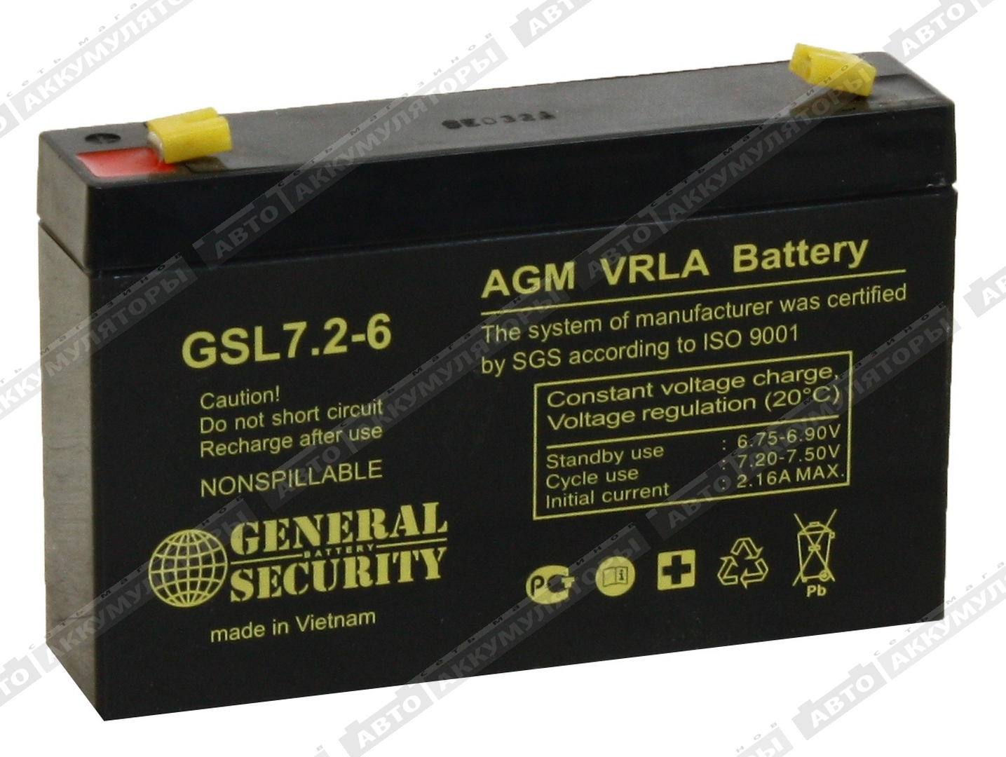Свинцово-кислотные аккумуляторы General Security серии GSL разработаны для обеспечения резервным питанием систем охраны и безопасности, телекоммуникационного оборудования, промышленных объектов широкого назначения, работы в ИБП. Наилучшее использование батарей обеспечивается в буферном режиме. Достоинства: герметичность, надёжность и безопасность, высокая мощность выходного тока, малое внутреннее сопротивление, хорошая способность к восстановлению после глубокого разряда.