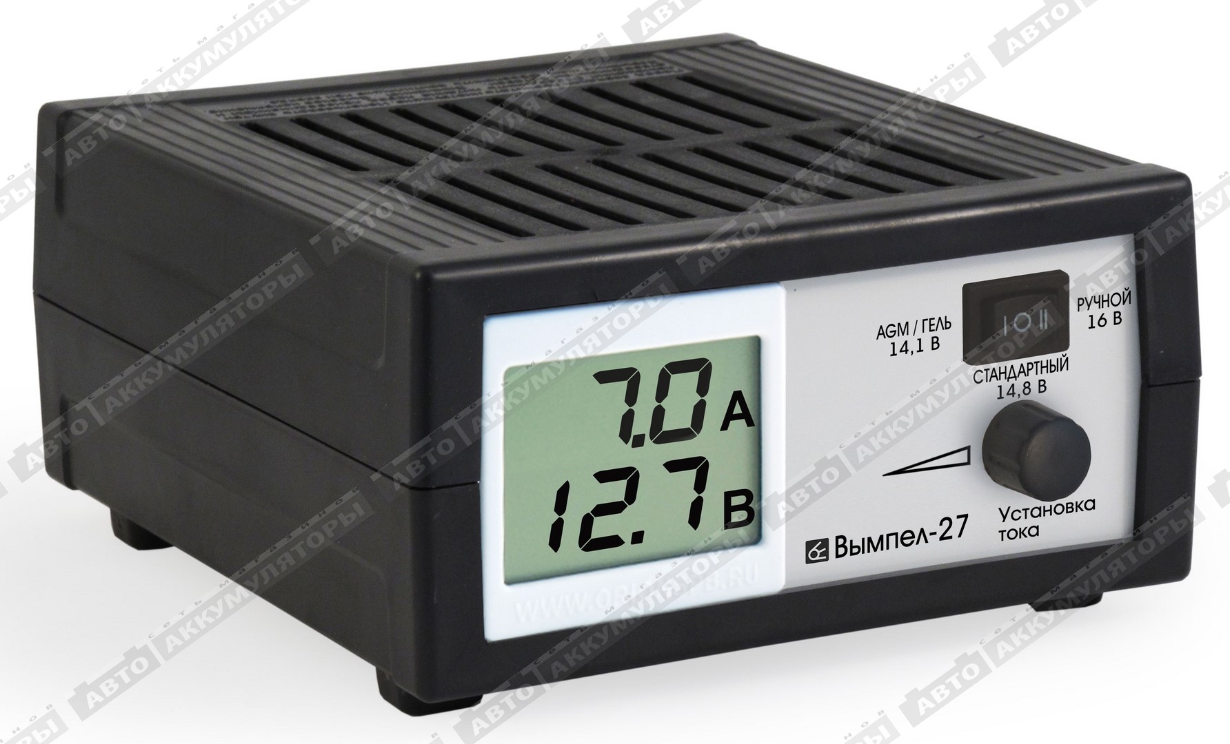 Зарядное устройство для автомобильного аккумулятора Вымпел 27 (7А, 14,1/14,8/16В) ЖКД