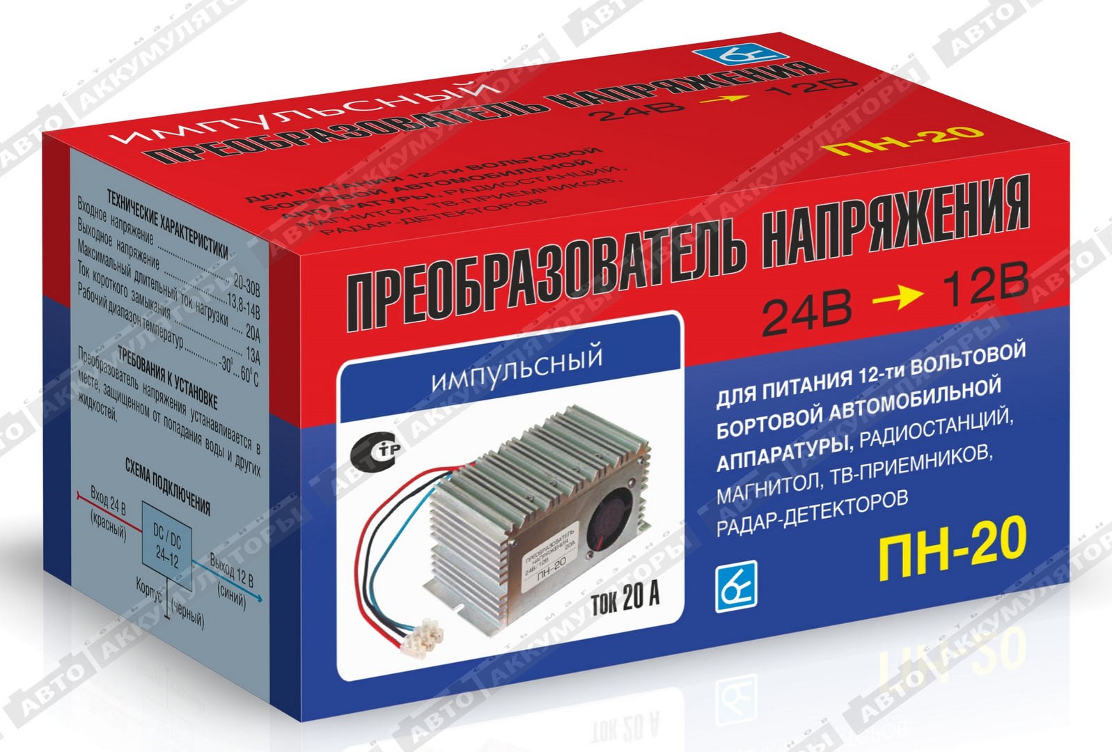 Преобразователь напряжения служит для преобразования напряжения 20-30В в напряжение 14В и предназначен для автомобилей с номинальным напряжением бортовой сети 24 В.