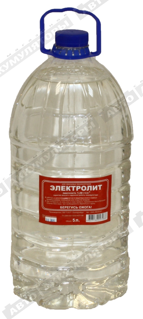 Электролит 5л. (1,28) УАК - это продукт, который предлагает компания-производитель из России. Этот электролит поставляется в упаковке объемом 5 литров с плотностью 1,28 г/см³.