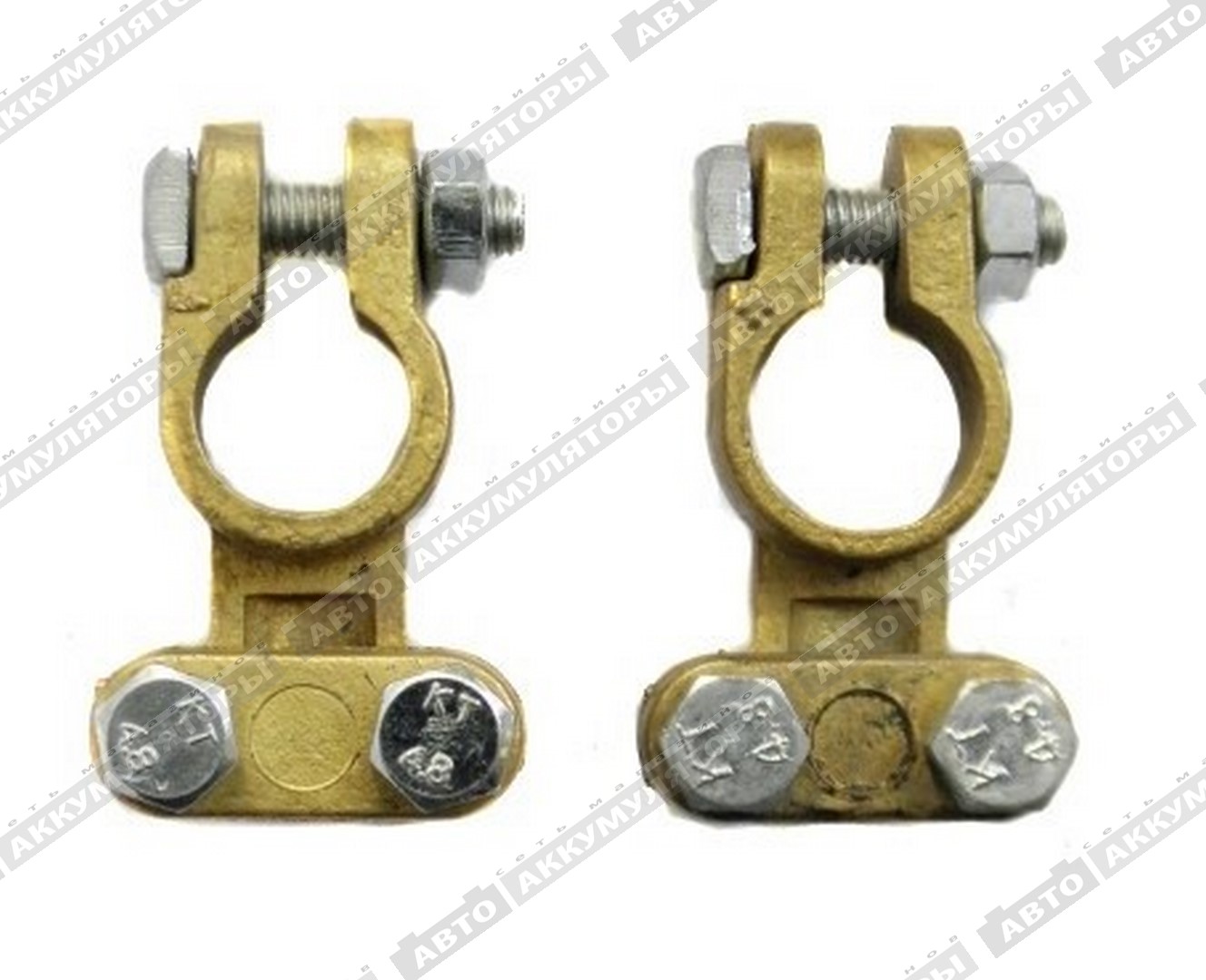 Клеммы "+/-" Латунь Азия (комплект) – надежные аккумуляторные клеммы азиатского стандарта, выполненные из высококачественной латуни для оптимальной электропроводности и защиты от коррозии.