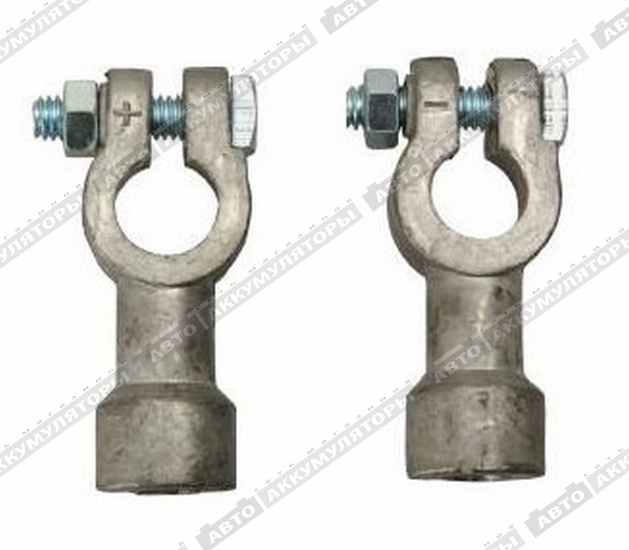 Клеммы переходные резьбовые (американский стандарт, комплект) — адаптеры для подключения европейских клемм к аккумуляторам с резьбовыми выводами (штифт 3/8"). Изготовлены из цинкового сплава, обеспечивают надежный контакт. В комплекте: плюсовая (∅ 19,5 мм) и минусовая (∅ 17,9 мм) клеммы. Применяются в автотехнике с батареями стандарта USA Type 31 / Europe Type 1.